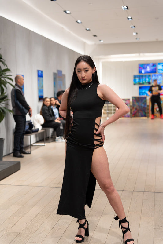 Midnight Allure Steel Ring Halter Dress