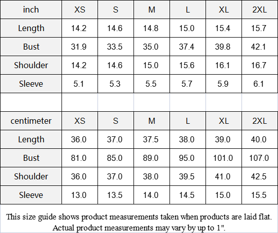 This size guide shows product measurements taken when products are laid flat. Actual product measurements may vary by up to 1".