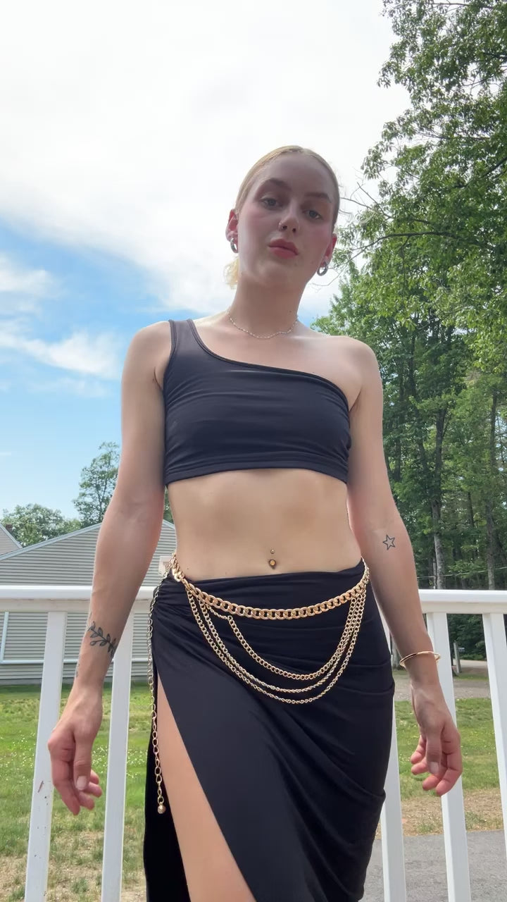 Complete your look and make a statement with our Metal Multi Chain Layered Belly Chain Belt in Gold or Silver. Add it to your cart now and showcase your style with this glamorous accessory!